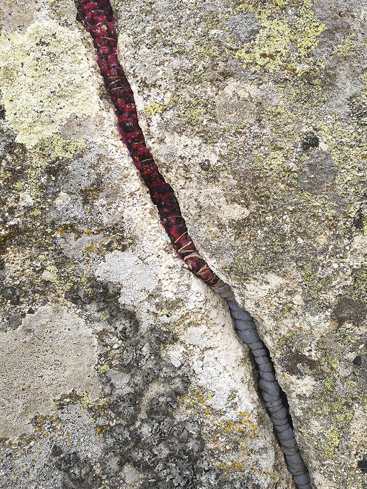 «Healing the Wounds» is placed in a crack like a bandage or gauze. «Nature is the art of which We are a Part». Art as a healing element before life.