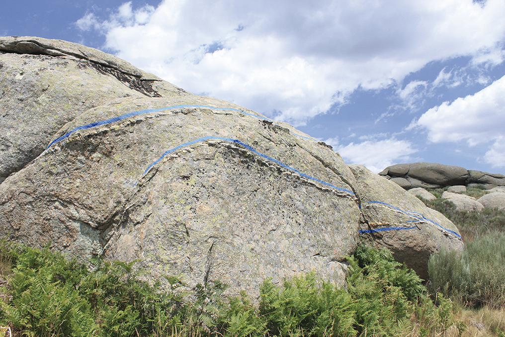 Es el resultado de una colaboración de la artista con una grafía natural, para resaltarla, potenciarla y llamar la atención para su contemplación. Estas crestas al tener más proporción de cuarzo, se deterioran más lentamente que el resto.