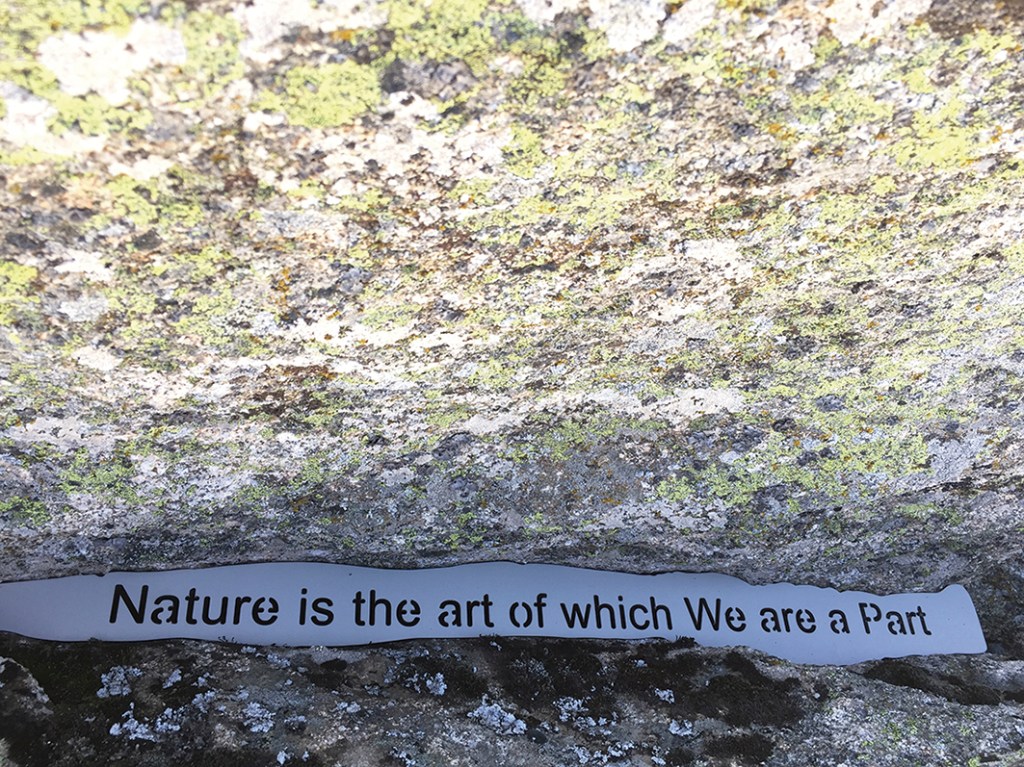 “Curando las heridas” está alojado en una grieta como si fuera una venda o una gasa. “Nature is the art of which We are a Part”, “La naturaleza es el arte del que formamos parte”. El arte como elemento curativo ante la vida.