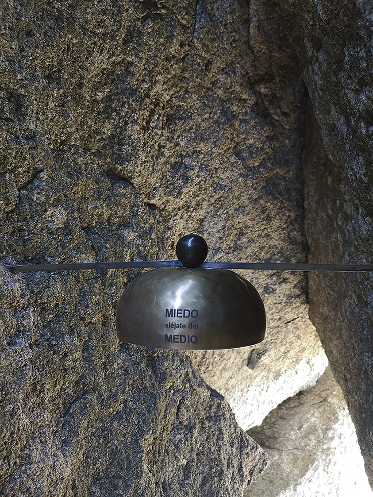 Está pensado para que sea el propio visitante el que lo realice, al tocar un cuenco tibetano con un golpe seco a modo de campana, alojado en un pasadizo para concentrar el sonido. Lleva grabado a láser el poema “MIEDO aléjate del MEDIO”.