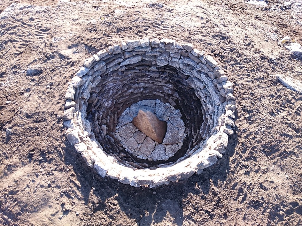 The rock is lined with sheep’s wool. It is as if all the sheep that have grazed on the Cerro were represented. His work speaks to us of this and also of the protection needed in these harsh lands in winter.