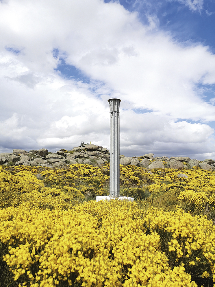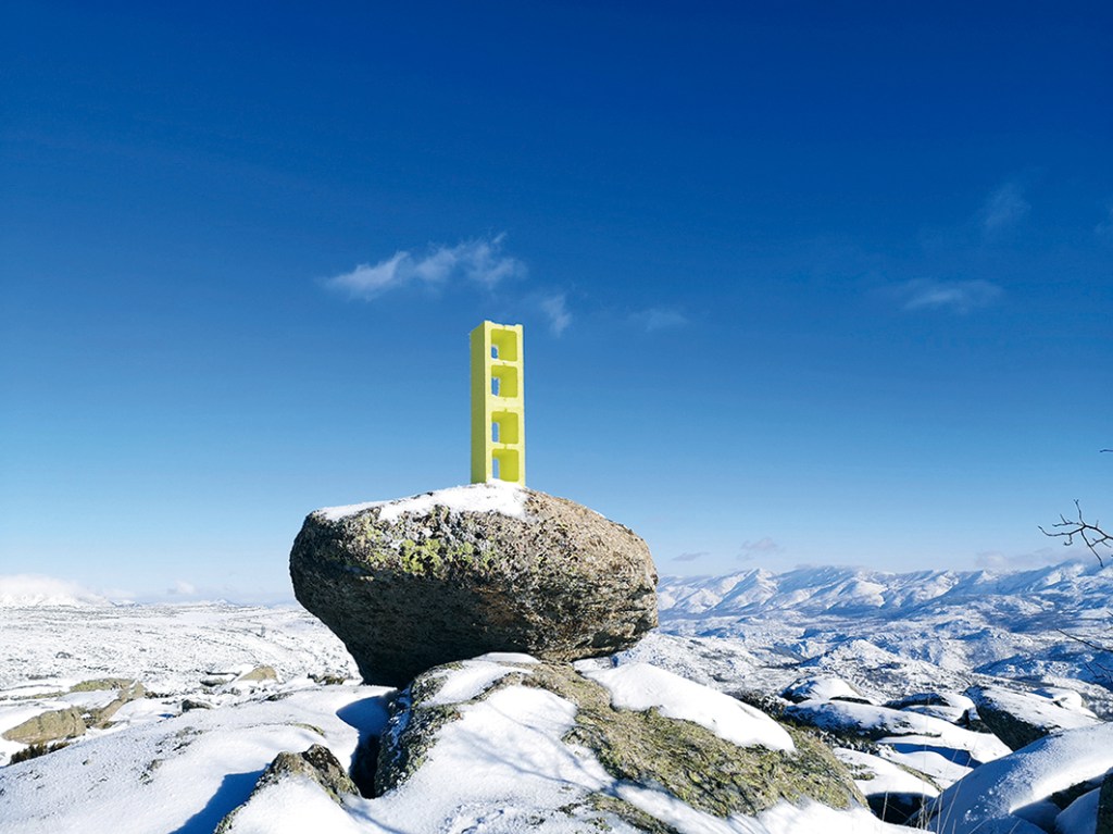 Located at the peak, «it poses a round trip between the object and its context, where what happens inside and outside the work is interconnected on a visual and conceptual level, it questions us about their interdependence».