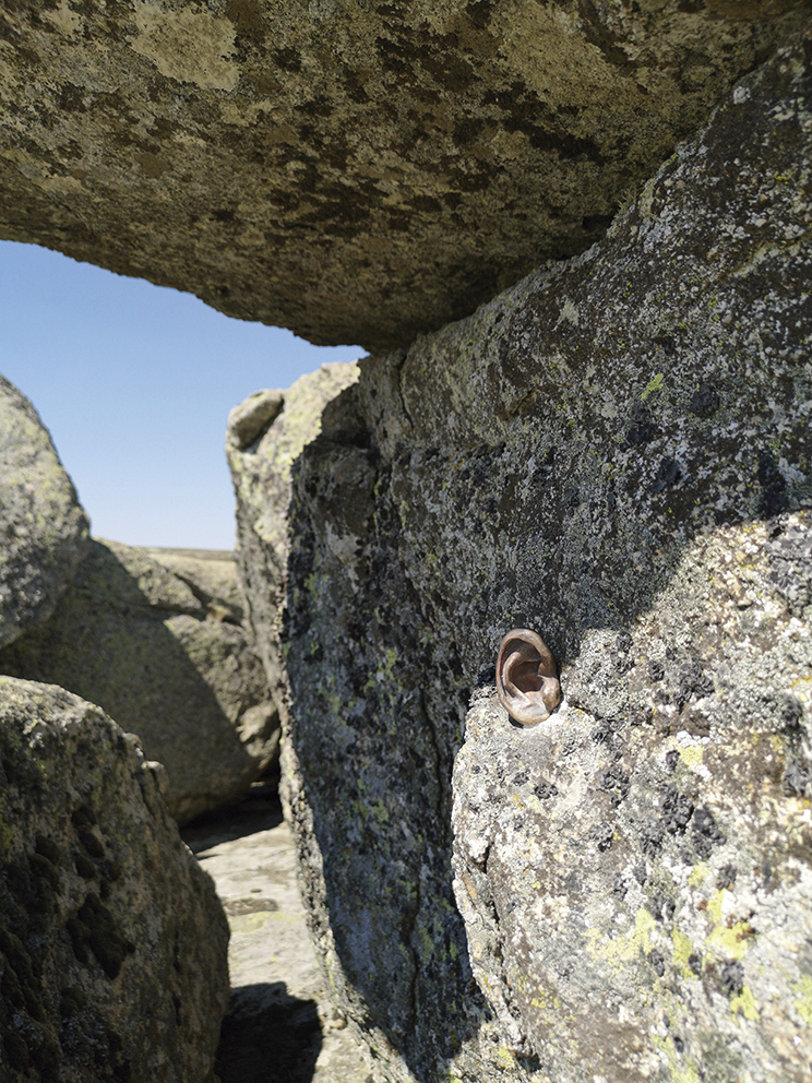 «The work suggests that we pause to stop and listen to the place. By listening to the space that surrounds us, we can feel enveloped by it and thus become part of it». There are 8 ears, a copy of those of the artist.