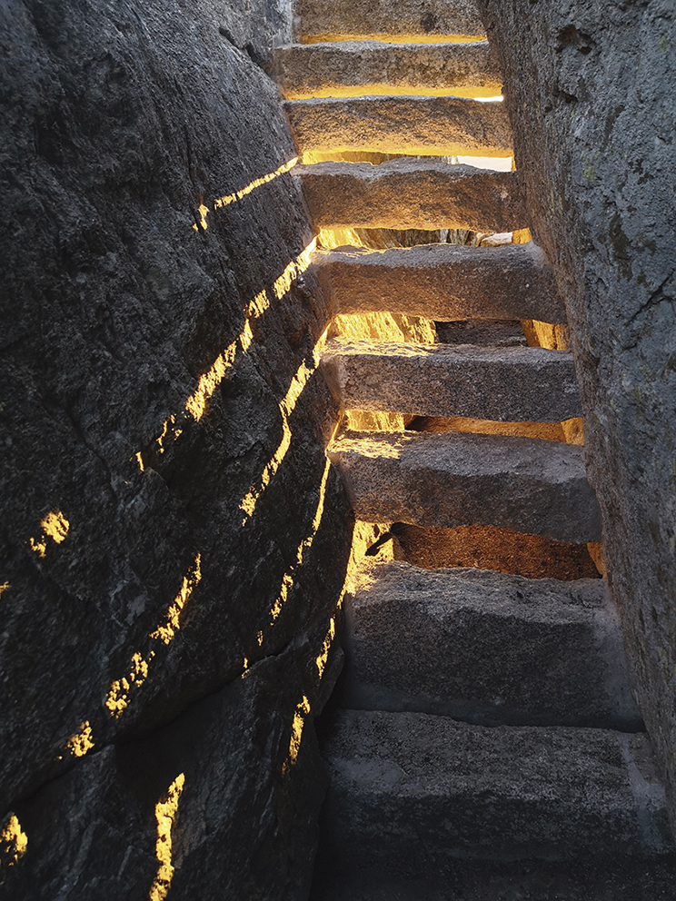 The german poem, STERBEN, ERBEN, STERN (die, inherit, star), «when we die we inherit a star», is carved in the Chapel. As we descend its staircase of overhang steps, we can choose the star we will inherit, what we are.