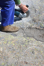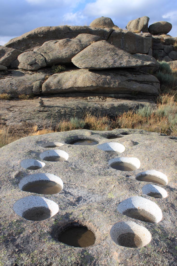 Las concavidades naturales producto de la erosión sobre la superficie de esta roca, por la acción del agua y el hielo, han sido aprovechadas por el artista para crear un collar de carácter simbólico añadiendo las cuentas que faltaban mediante una intervención con herramientas mecánicas. Las primeras lluvias de agosto ha llenado de agua tanto las naturales como las artificiales, a partir de ahora será la naturaleza la que siga haciendo que evolucione esta obra.
