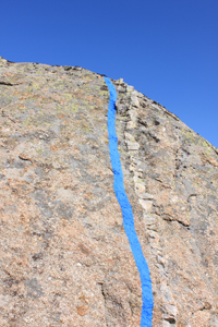 El azul del cielo en un punto determinado parece descender, cual reguero, por las paredes casi verticales de la roca. La gravedad ha desaparecido.