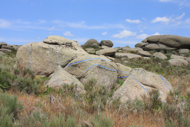 Esta obra es el resultado de una colaboración de la artista con una grafía natural, para resaltarla, potenciarla y llamar la atención para su contemplación. Estas crestas están presentes porque en el granito hay una diferencia de erosión. Al tener más proporción de cuarzo, se deterioran más lentamente que el resto, resaltando sobre la superficie.