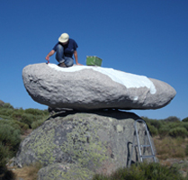 El paraje que anuncia el infinito, es la primera obra que se realiza en el Centro de Arte y Naturaleza Cerro Gallinero. Se conoce también como La nube porque la masa pétrea pintada de blanco se confunde en ciertas condiciones de luz con las propias nubes del cielo, adquiere la misma ligereza y se funde con ellas, como una más. Los visitantes pueden subirse a la roca sin zapatos, contemplar el paisaje desde esa altura e imaginar que están flotando en las nubes.
