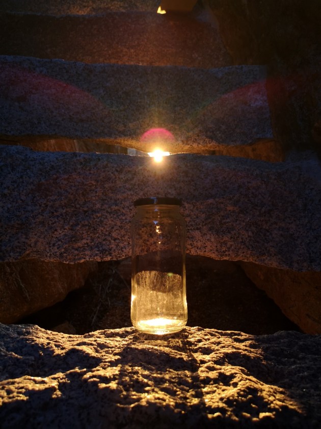 Esta es la tercera convocatoria de la “Conjunción solar”. Este año tendrá lugar el día 18 de octubre y transcurre en la obra La Capilla Azul, número 42 de la Colección permanente https://cerrogallinero.com/la-coleccion/ Durante este mes a la hora del ocaso el Sol se alinea con la obra y en el tramo de la escalera volada, en una gran grieta, la luz la atraviesa. Antes de que suceda Christian Acker y Susana Corullón nos presentarán su obra Abalorios.